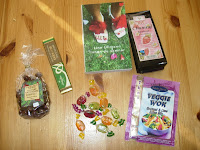 Paketet innehåll också the, svart bladte med smultronsmak, rättvisemärkt. Doftar underbart! En kryddmix, Veggie Wok Coconut & Lime Spice Mix. Brukar då och då använda liknande kryddmixer, men har inte testat just denna tidigare. En påse rättvisemärkta och ekologiska choklad-kaffebönor, frasiga kaffebönor med mjölkchoklad. Jag älskar choklad/kaffe-smak så dessa ser jag fram emot att mumsa på till helgen. Det fanns också ett gäng karameller och så en chokladkaka, Anthon Berg mörk choklad, Ecuador. Mmmm. Ett mycket lyckat paket. Jag ser redan fram emot nästa paket 🙂