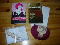 I paketet fanns även ett ekologiskt garn, Mark & Kattens Ecoull i en härligt vinröd färg och så en liten pryl, en ”påtdocka”, som man gör snörväv med. Man kan alltså göra snoddar och sånt med den. Min hemliga bokvän skrev att hon brukade göra sådana när hon var liten. Själv har jag aldrig testat på, men nu ska jag göra det. Jag tror även att det kan vara något för min dotter att pyssla på med om några år.
